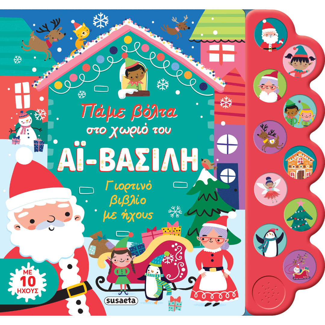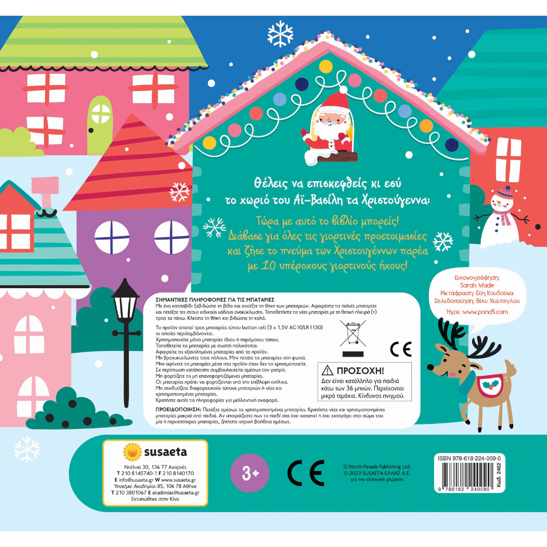 Θέλεις να επισκεφθείς κι εσύ το χωριό του Αϊ-Βασίλη τα Χριστούγεννα; Τώρα με αυτό το βιβλίο μπορείς! Διάβασε για όλες τις γιορτινές προετοιμασίες και ζήσε το πνεύμα των Χριστουγέννων παρέα με 10 υπέροχους γιορτινούς ήχους!