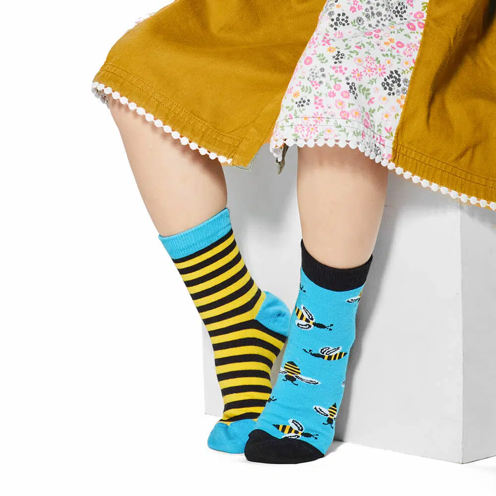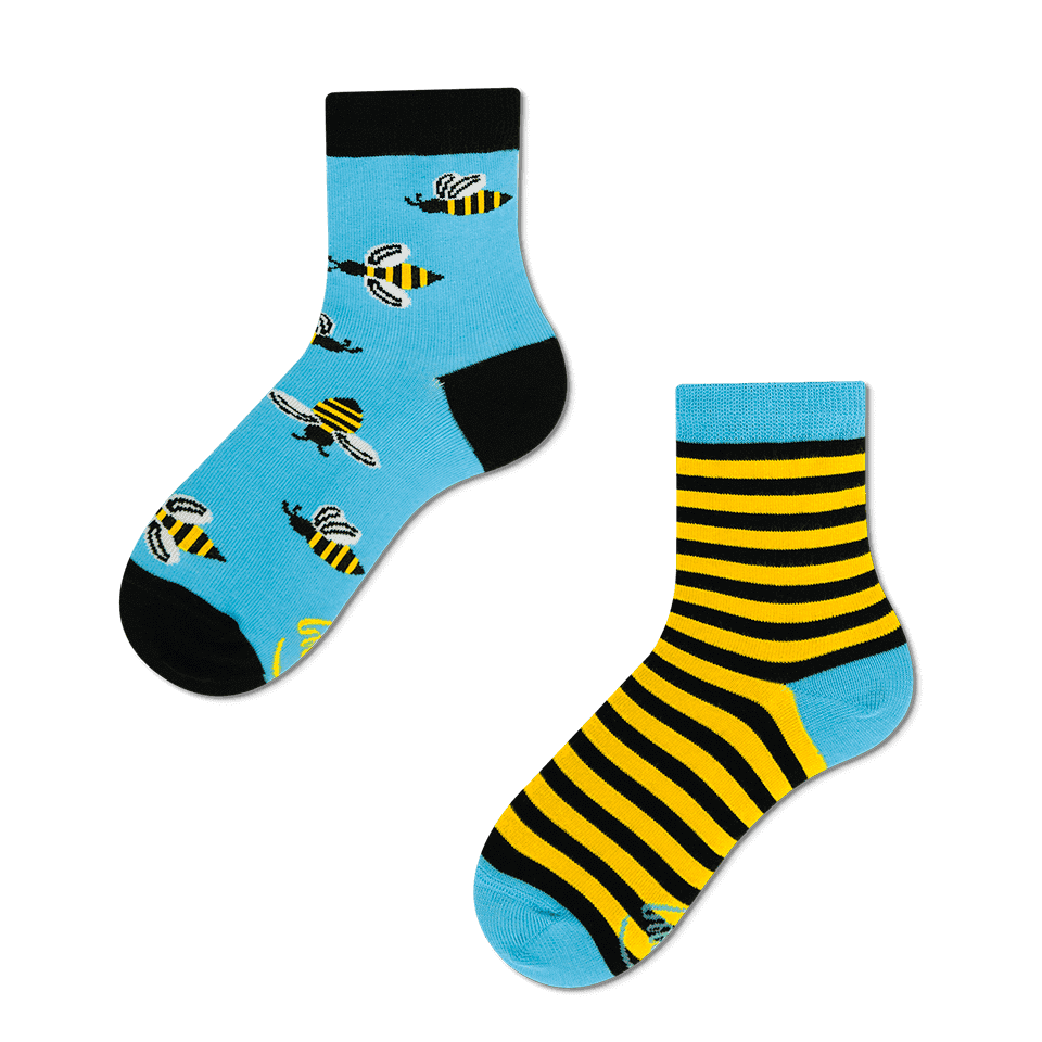 Παιδικές κάλτσες με σχέδιο μέλισσες σε μπλε, κίτρινο και μαύρο χρώμα.