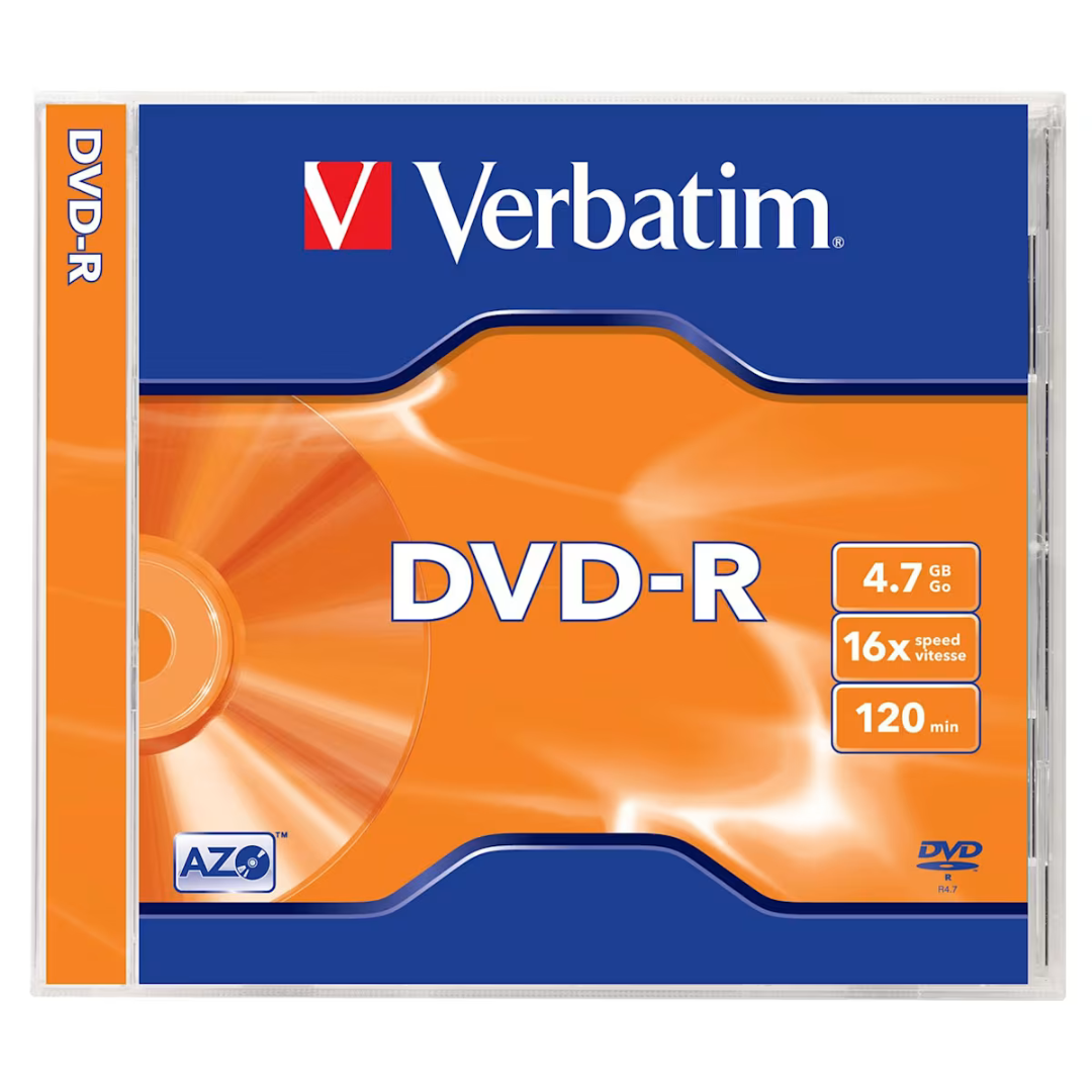 Τα DVD-R της Verbatim είναι μια ιδανική λύση για αντιγραφή, δημιουργία αντιγράφων ασφαλείας και αρχειοθέτηση ψηφιακών αρχείων μεγάλου μεγέθους – από μουσική και βίντεο έως έγγραφα, αναφορές και υπολογιστικά φύλλα. Εξαιρετικά αξιόπιστα ειδικευμένα μέσα εγγραφής για καταναλωτική και επαγγελματική χρήση. • Ταχύτητα εγγραφής: 16x • Χωρητικότητα: 4.7GB/120 min • Συσκευασία: 1 τμχ. σε θήκη