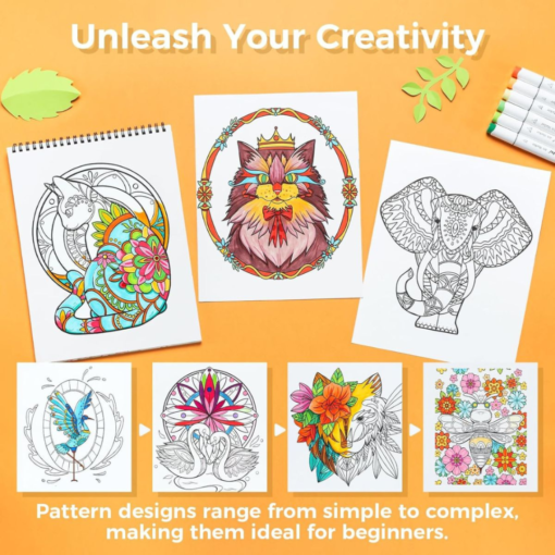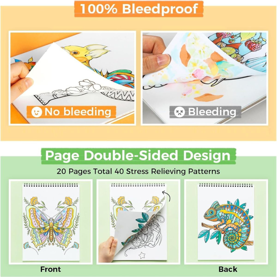- 20 φύλλα (40 σελίδες ζωγραφικής) με μοναδικά σχέδια