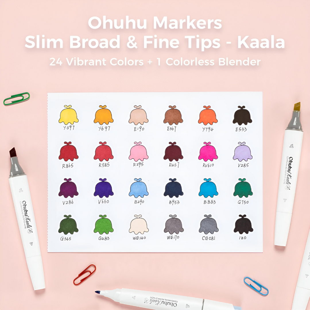 Το σετ περιλαμβάνει 24 μαρκαδόρους σε βασικές αποχρώσεις με διπλή μύτη slim chisel (1-7mm) και fine (1mm).