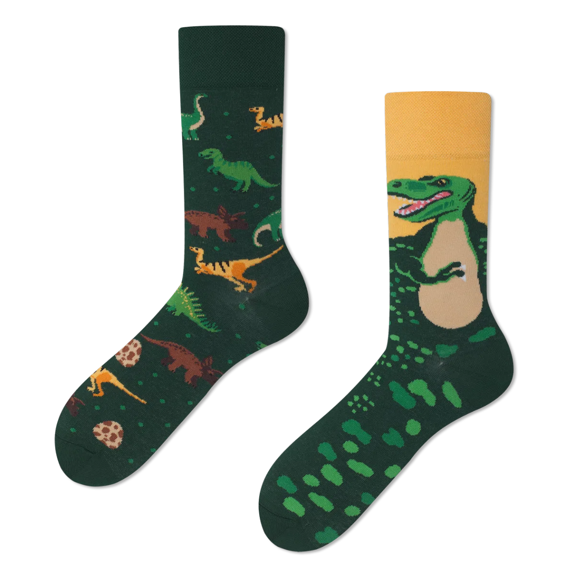 Γιόρτασε τα εντυπωσιακότερα πλάσματα που περπάτησαν ποτέ στη Γη! Από τον επιβλητικό T-Rex μέχρι τους πιο ήρεμους γίγαντες, οι κάλτσες με δεινόσαυρους φέρνουν προϊστορική ενέργεια σε κάθε σου βήμα. Φόρεσέ τες και δείξε την αγάπη σου για την εποχή των δεινοσαύρων, αποκτώντας… φοβερά “προϊστορικά” πόδια! 80% cotton 15% polyamide 3% elastan 2% other fibers