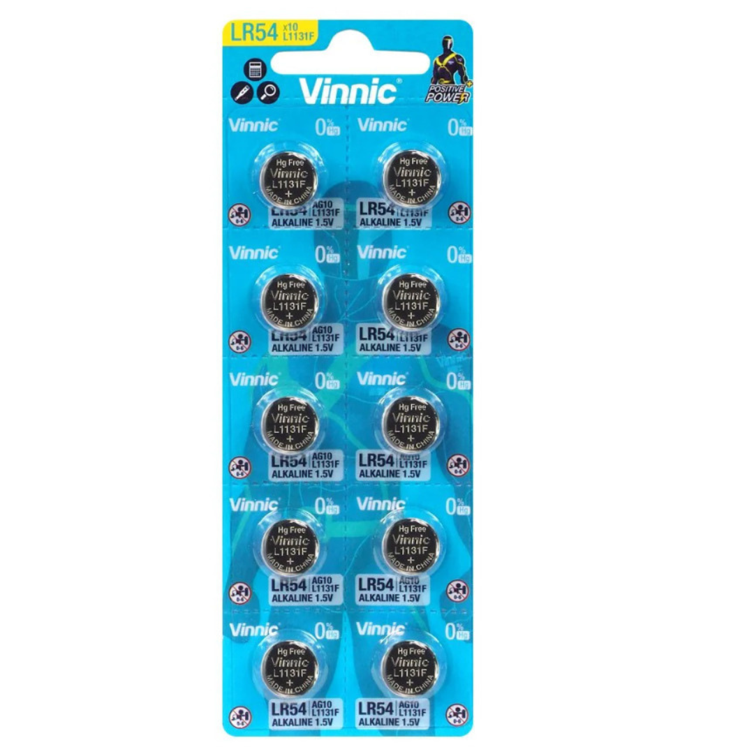Μπαταρίες Buttoncell Vinnic LR1131 AG10 LR54 σε συσκευασία των 10 τεμαχίων με διάτρητη συσκευασία.