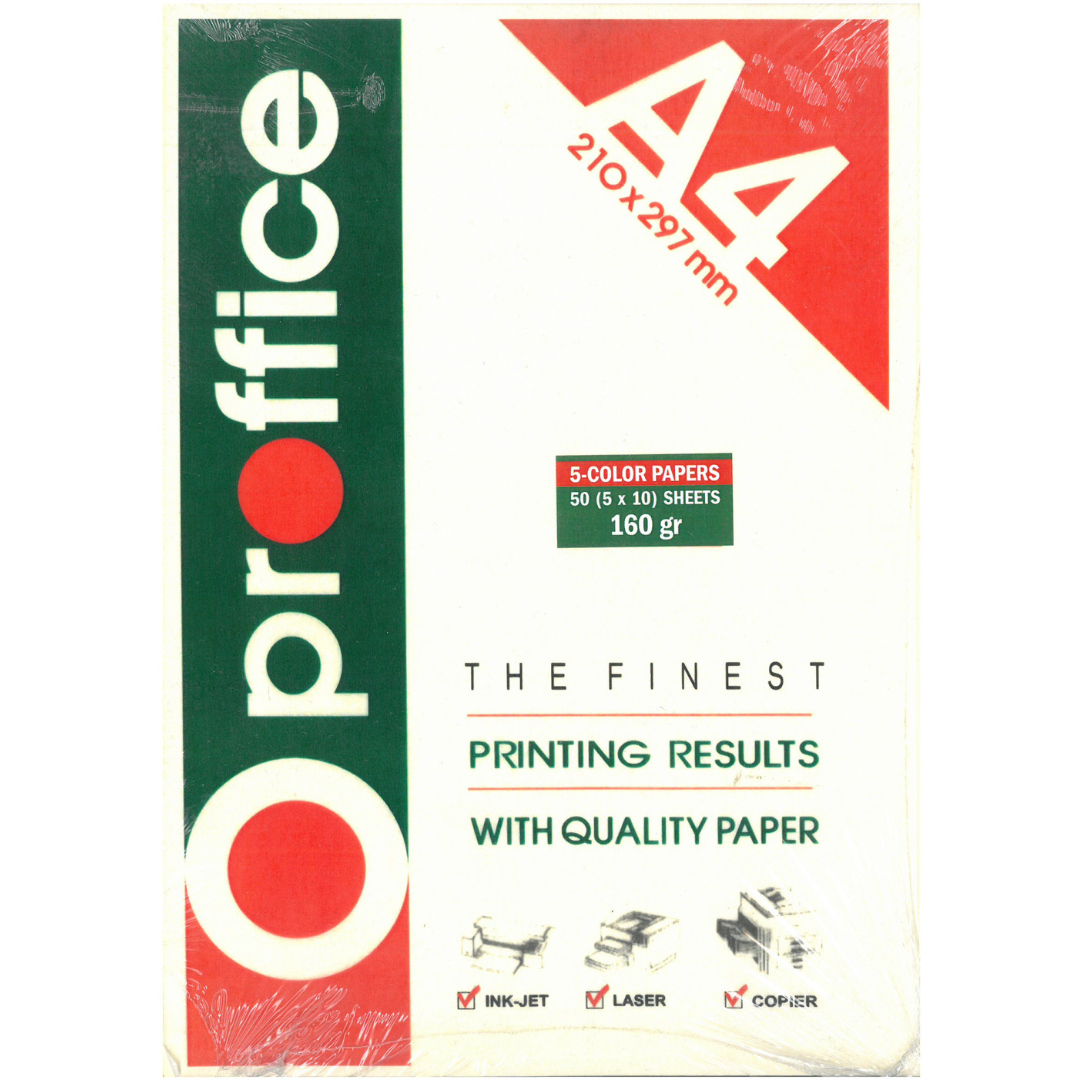 Χαρτί Α4 PROFFICE 160gr σε διάφορα χρώματα (5 Χρώματα x 10 φ.), ιδανικό για inkjet, laserjet, copier