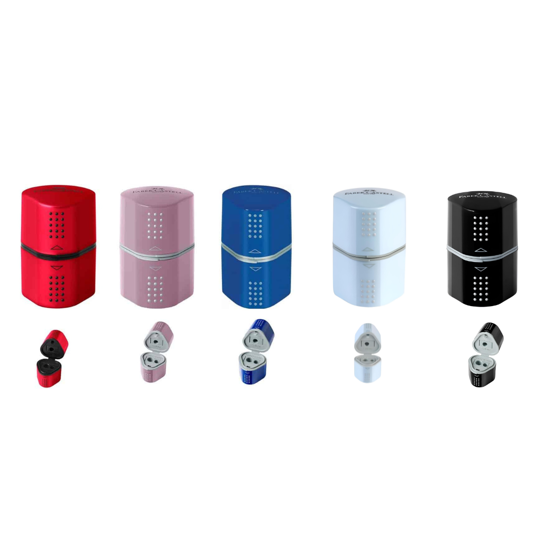 - Τριπλή ξύστρα με δοχείο, για μολύβια γραφίτη και ξυλομπογιές σε κανονικά και τζάμπο μεγέθη